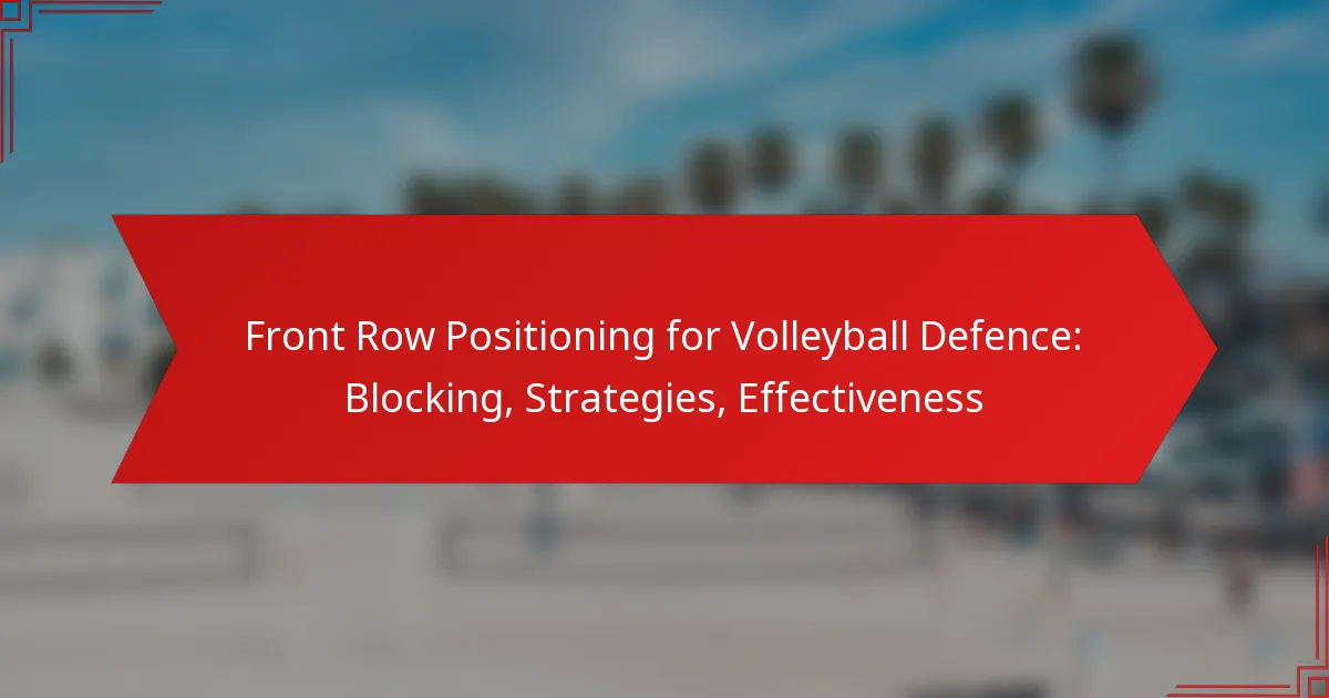 Front row positioning in volleyball defence refers to the strategic placement of players near the net to block attacks and defend against opposing hitters. This positioning is crucial for effective defence, as it directly influences a team’s ability to prevent points and maintain control of the game.
