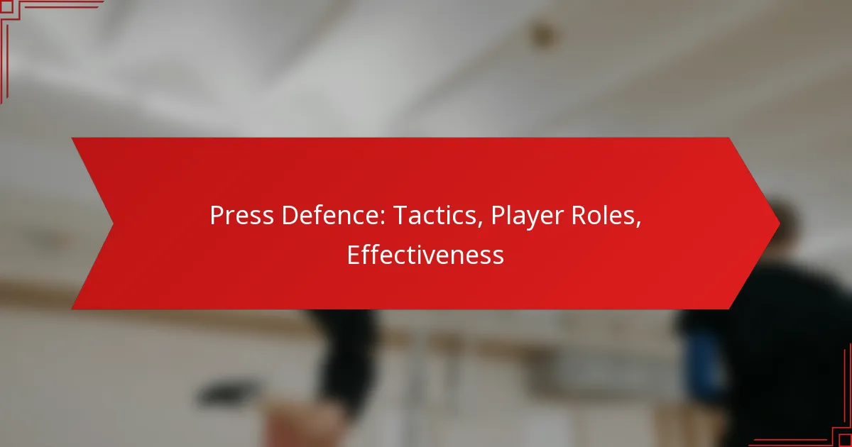Press defence is a strategic approach that emphasises coordinated movements and positioning to regain ball possession from opponents. It encompasses various tactics, including high and low pressing, and requires players to understand their specific roles to maximise effectiveness. When executed well, press defence can lead to increased turnovers and scoring opportunities, though its success can vary based on the team’s context and implementation.