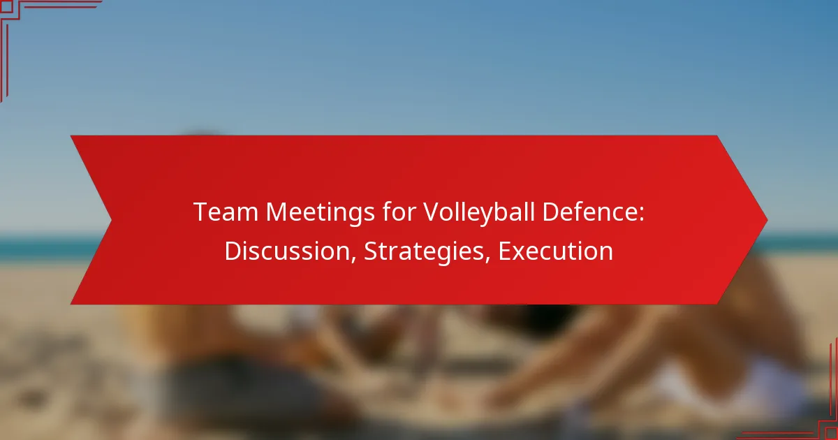 Team meetings for volleyball defence are essential for improving communication and aligning strategies among players. These gatherings provide a platform to discuss tactics, share insights, and develop a cohesive approach to defensive play, ultimately enhancing team performance. By focusing on structured agendas and active participation, teams can effectively address key defensive strategies and foster continuous improvement.